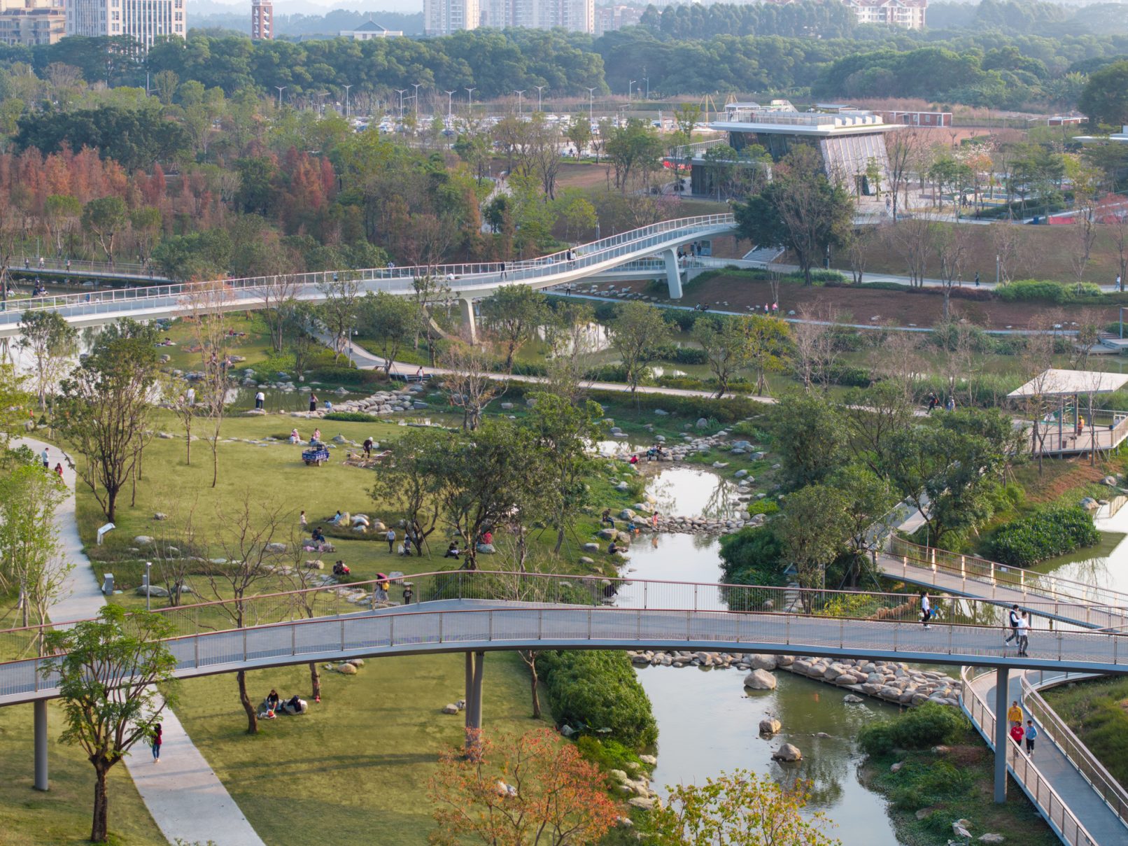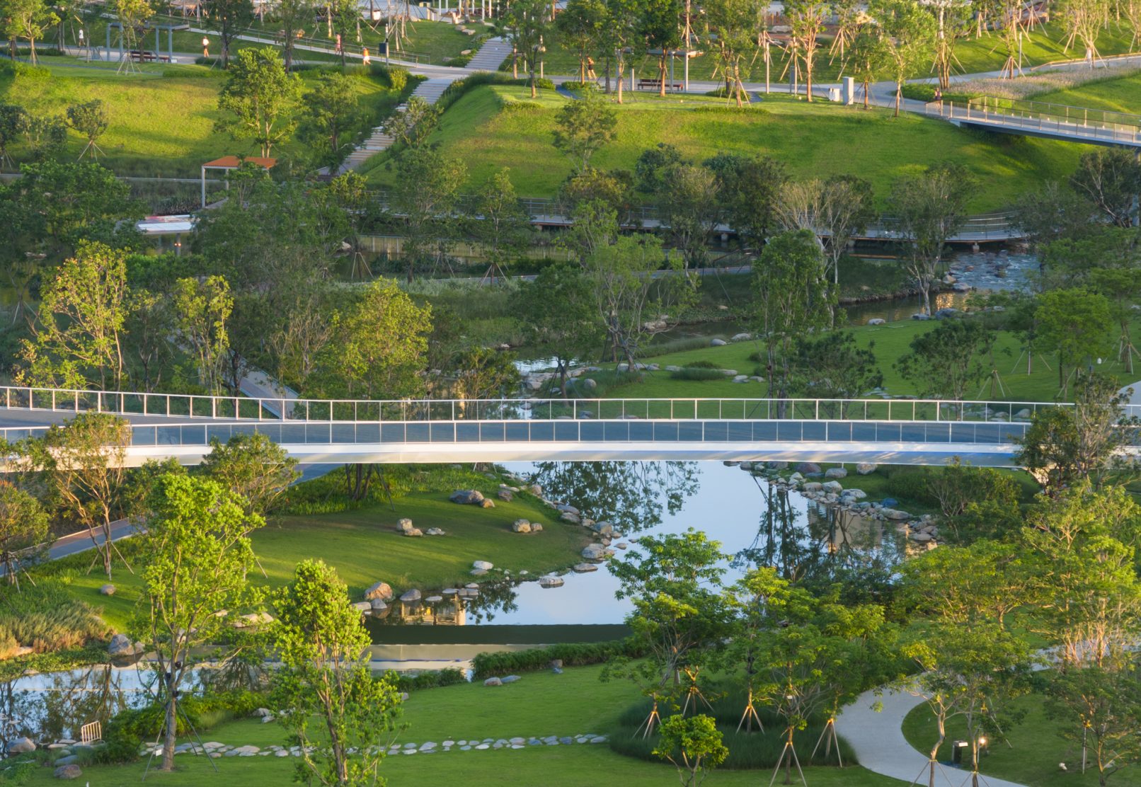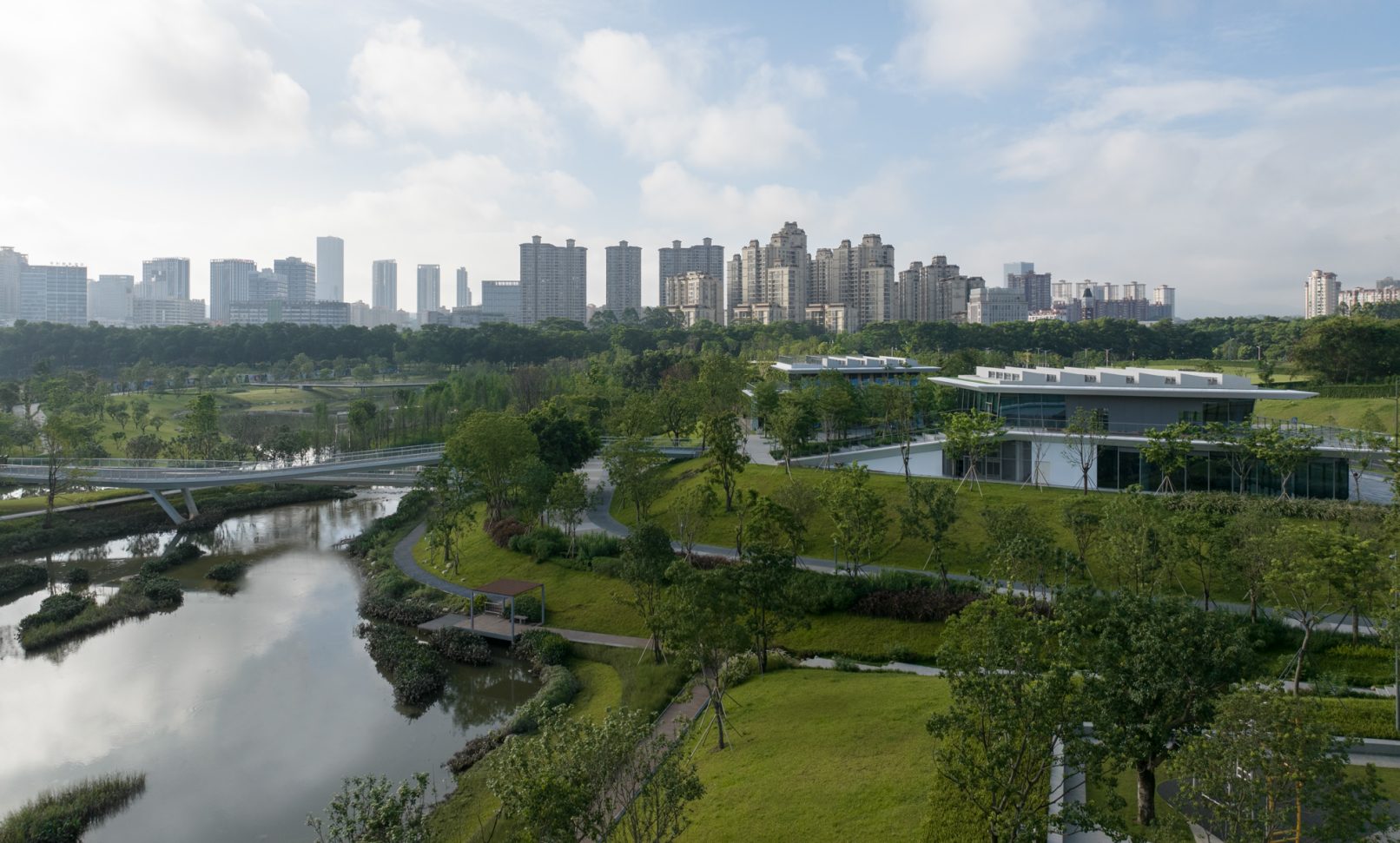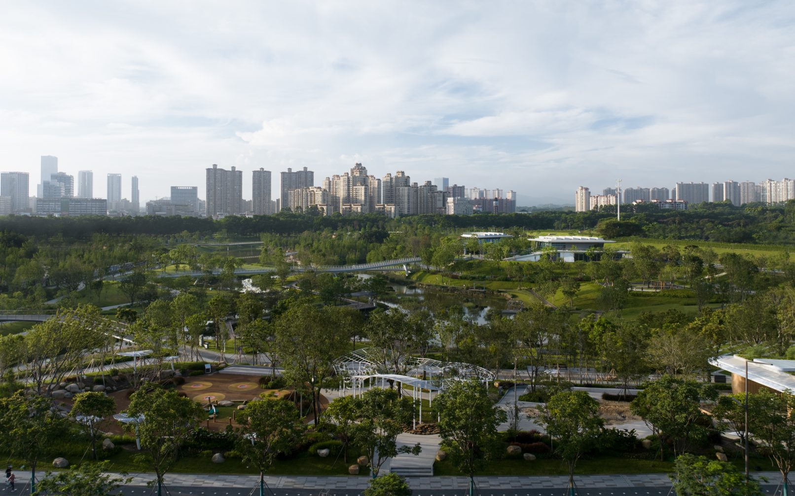 受建筑设计单位:汉森伯盛和景观设计单位:Henning Larsen的共同委托为东莞中心公园记录下的不同季节的图片,公园位于东莞国际商务区核心位置,其原址是一座自然古村,目前已开放南区,于2023年4月正式投入使用。