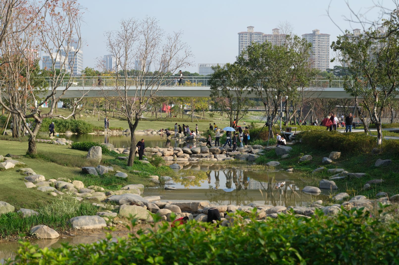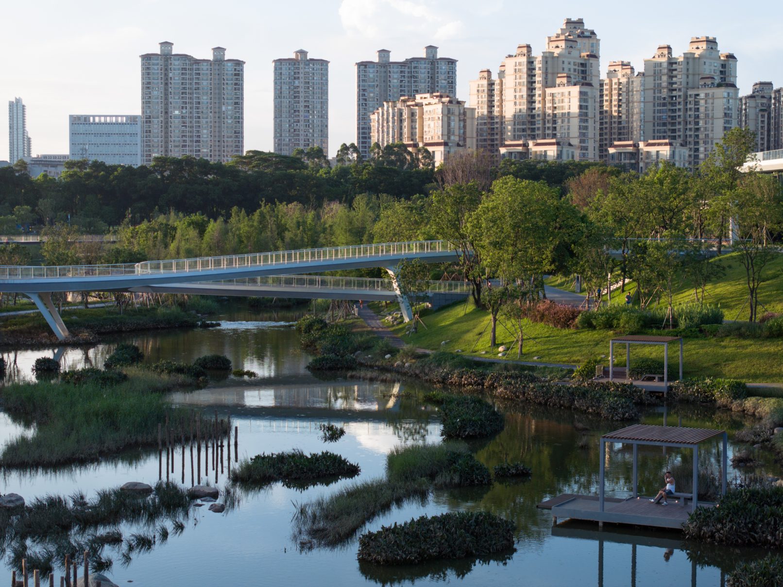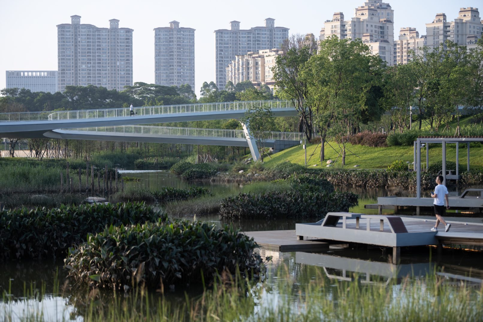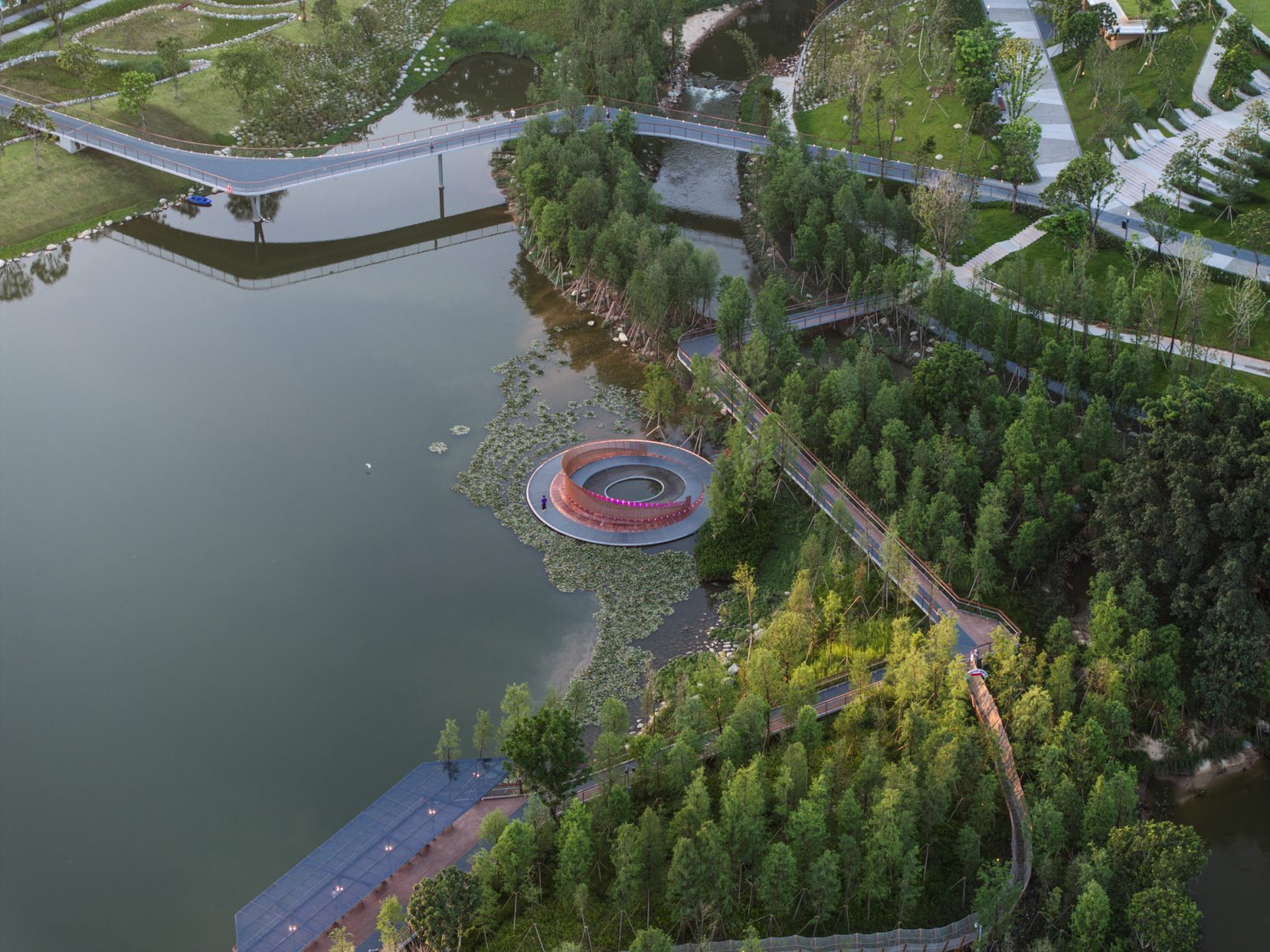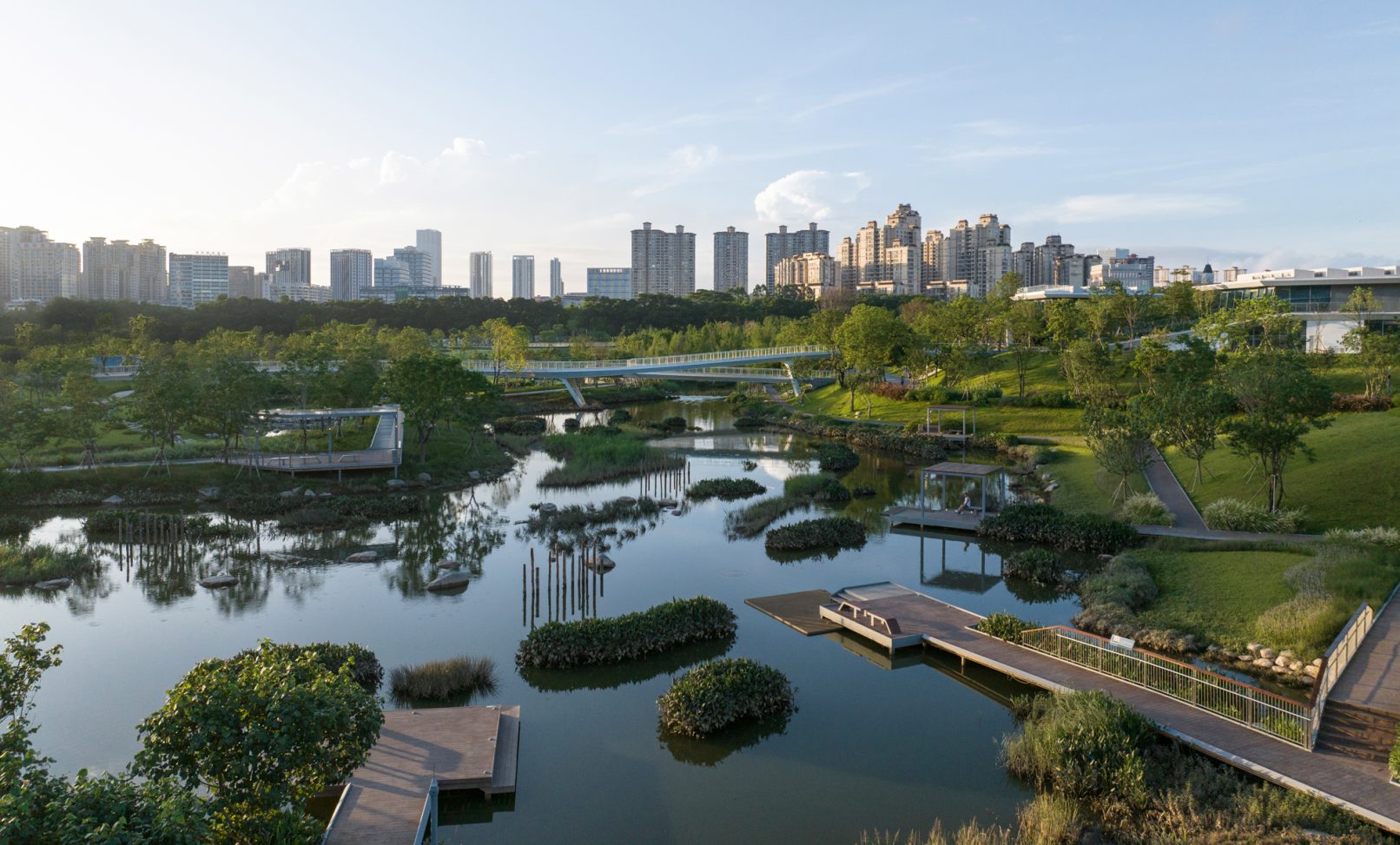 受建筑设计单位:汉森伯盛和景观设计单位:Henning Larsen的共同委托为东莞中心公园记录下的不同季节的图片,公园位于东莞国际商务区核心位置,其原址是一座自然古村,目前已开放南区,于2023年4月正式投入使用。