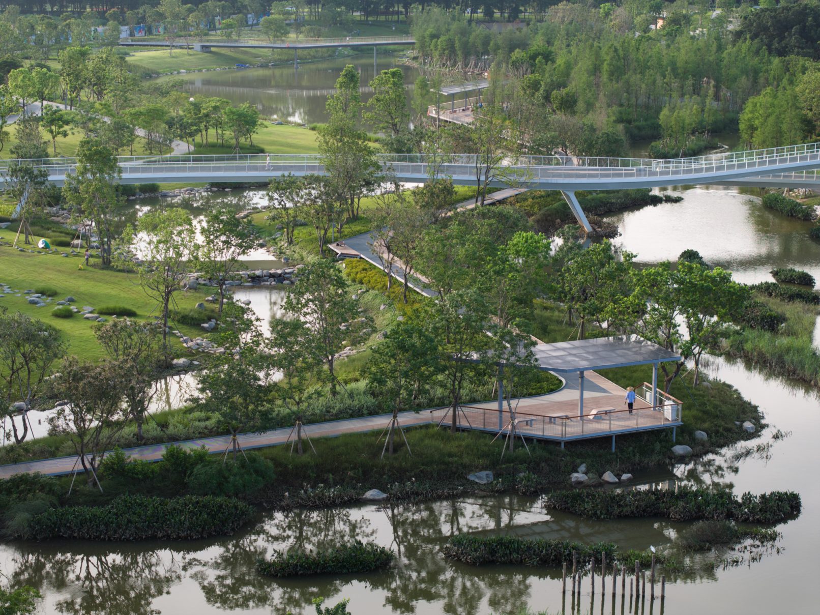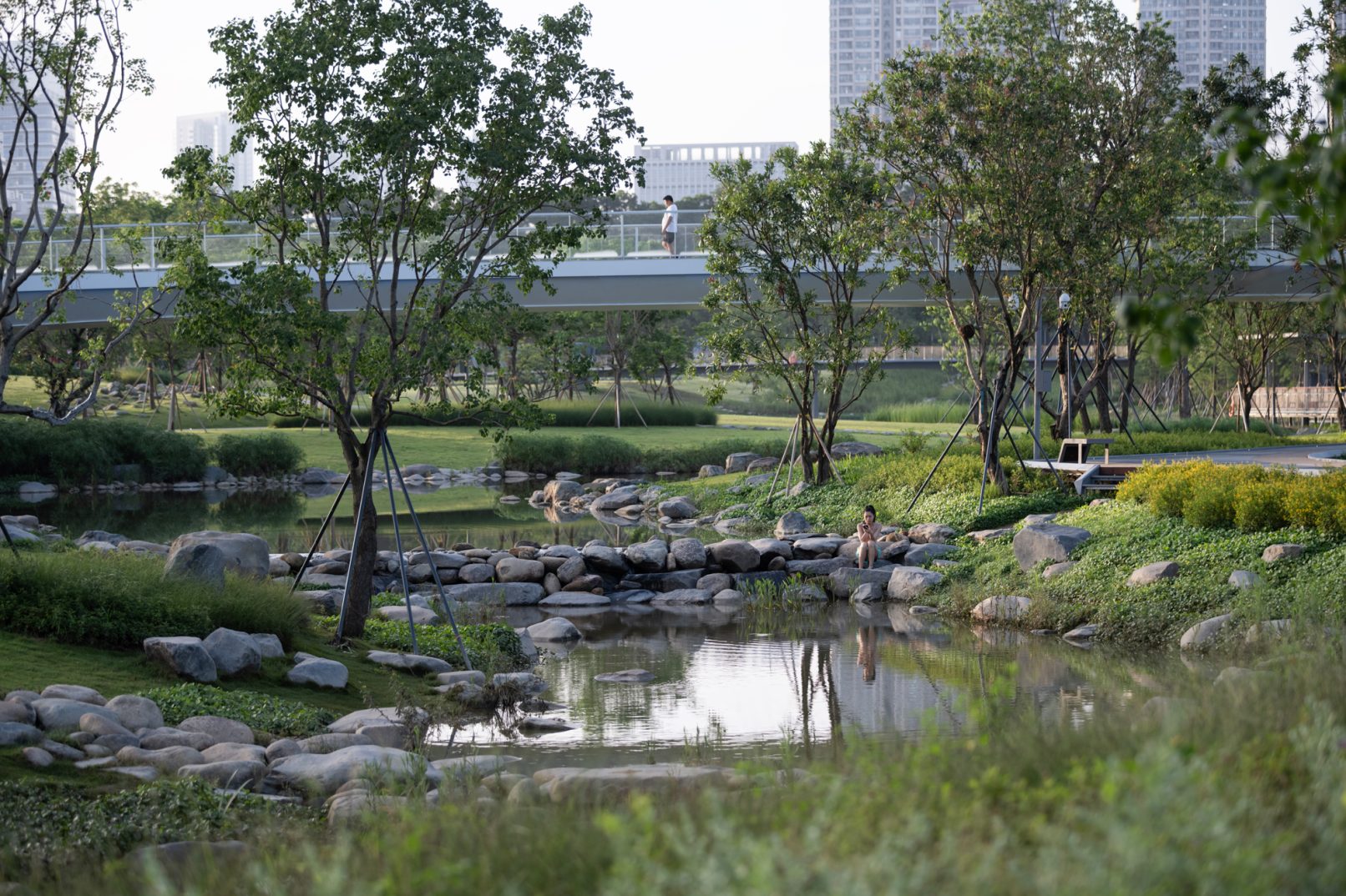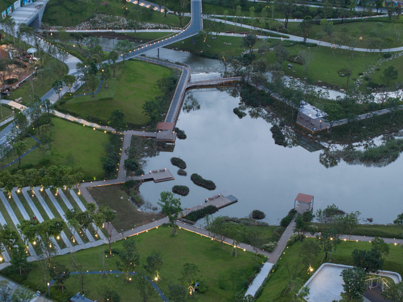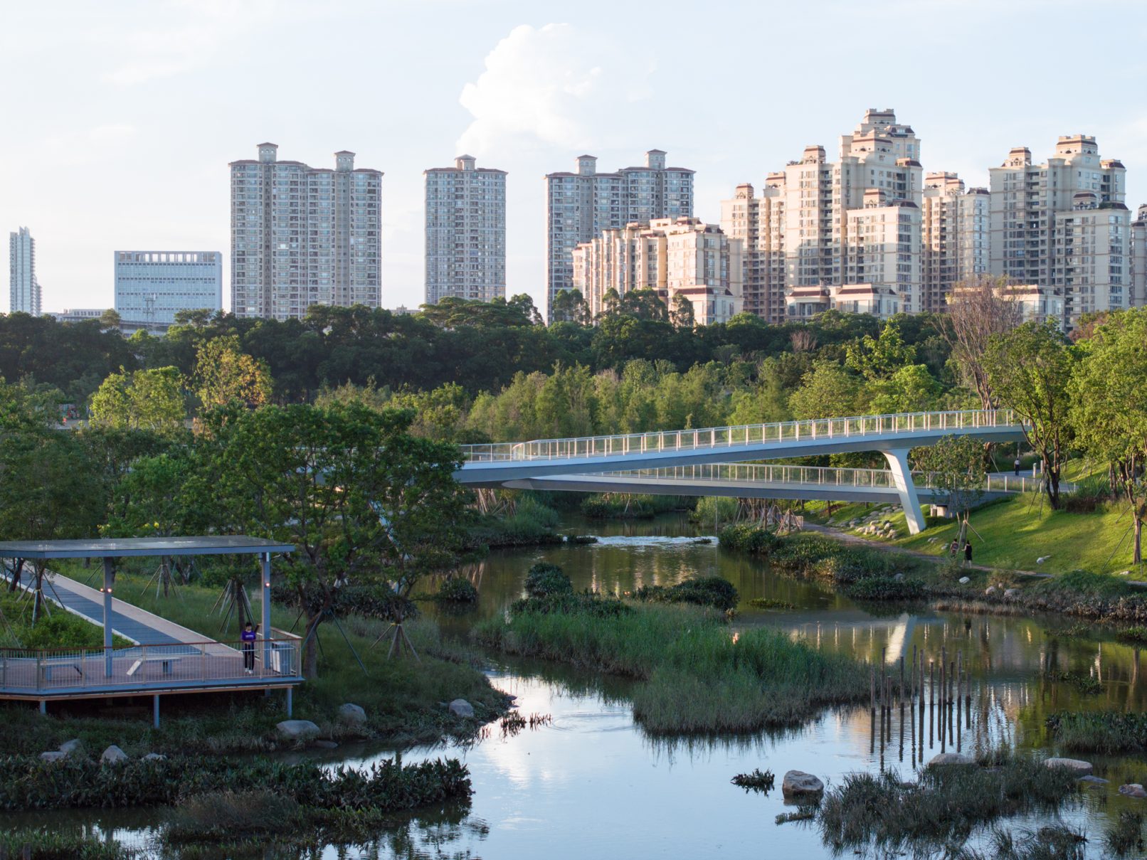 受建筑设计单位:汉森伯盛和景观设计单位:Henning Larsen的共同委托为东莞中心公园记录下的不同季节的图片,公园位于东莞国际商务区核心位置,其原址是一座自然古村,目前已开放南区,于2023年4月正式投入使用。