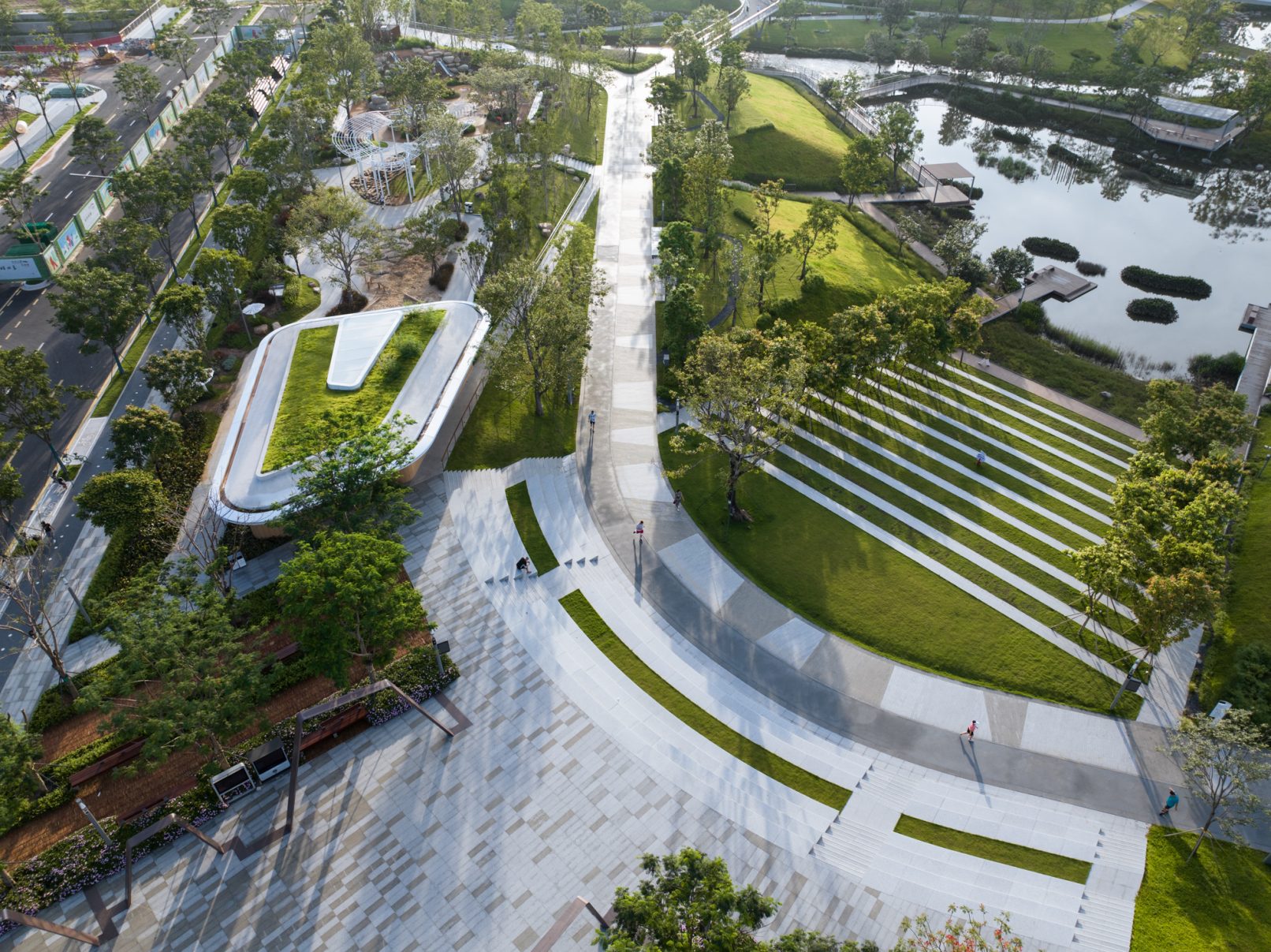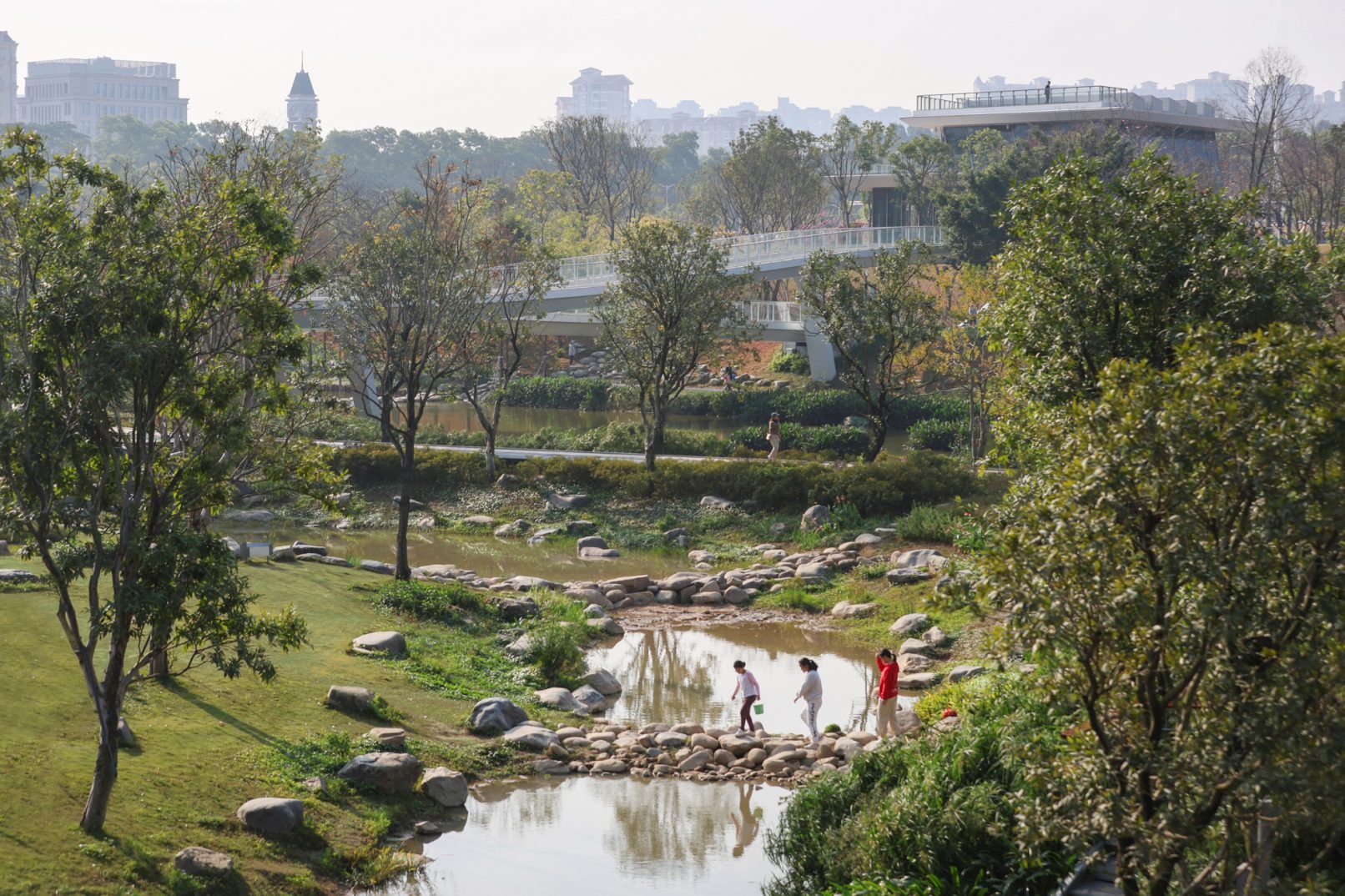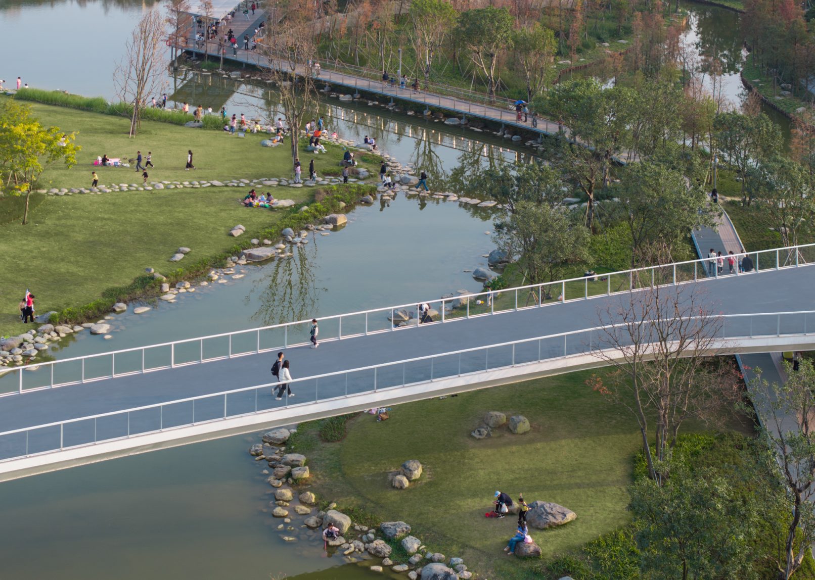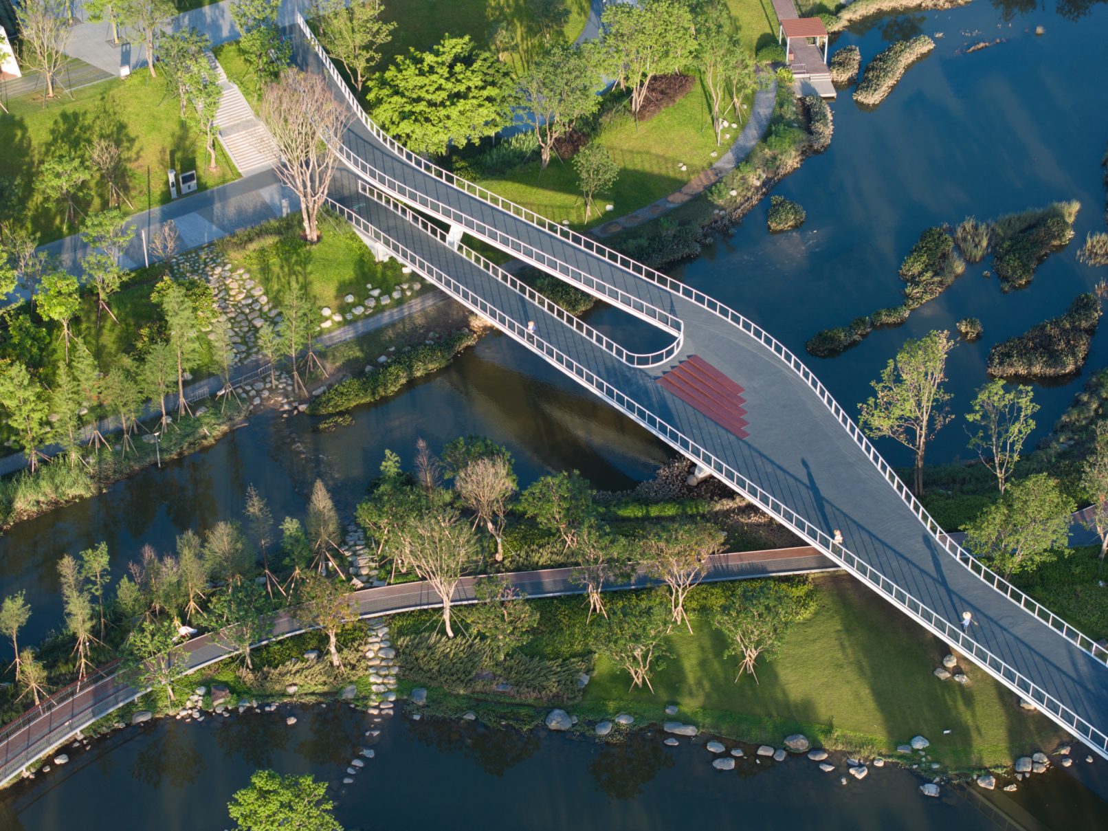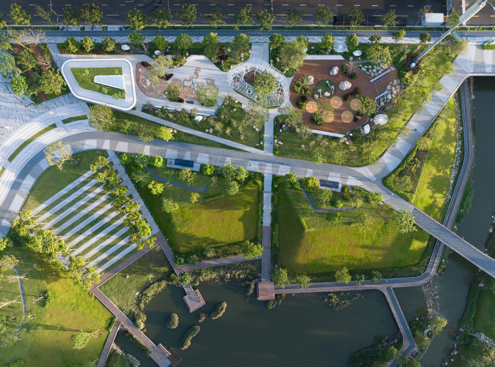 受建筑设计单位:汉森伯盛和景观设计单位:Henning Larsen的共同委托为东莞中心公园记录下的不同季节的图片,公园位于东莞国际商务区核心位置,其原址是一座自然古村,目前已开放南区,于2023年4月正式投入使用。