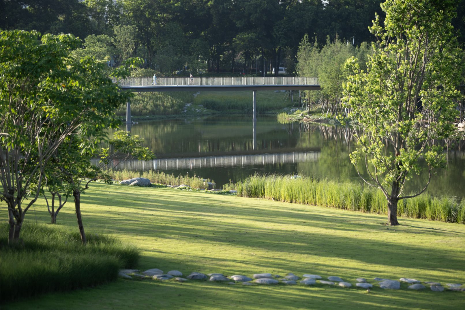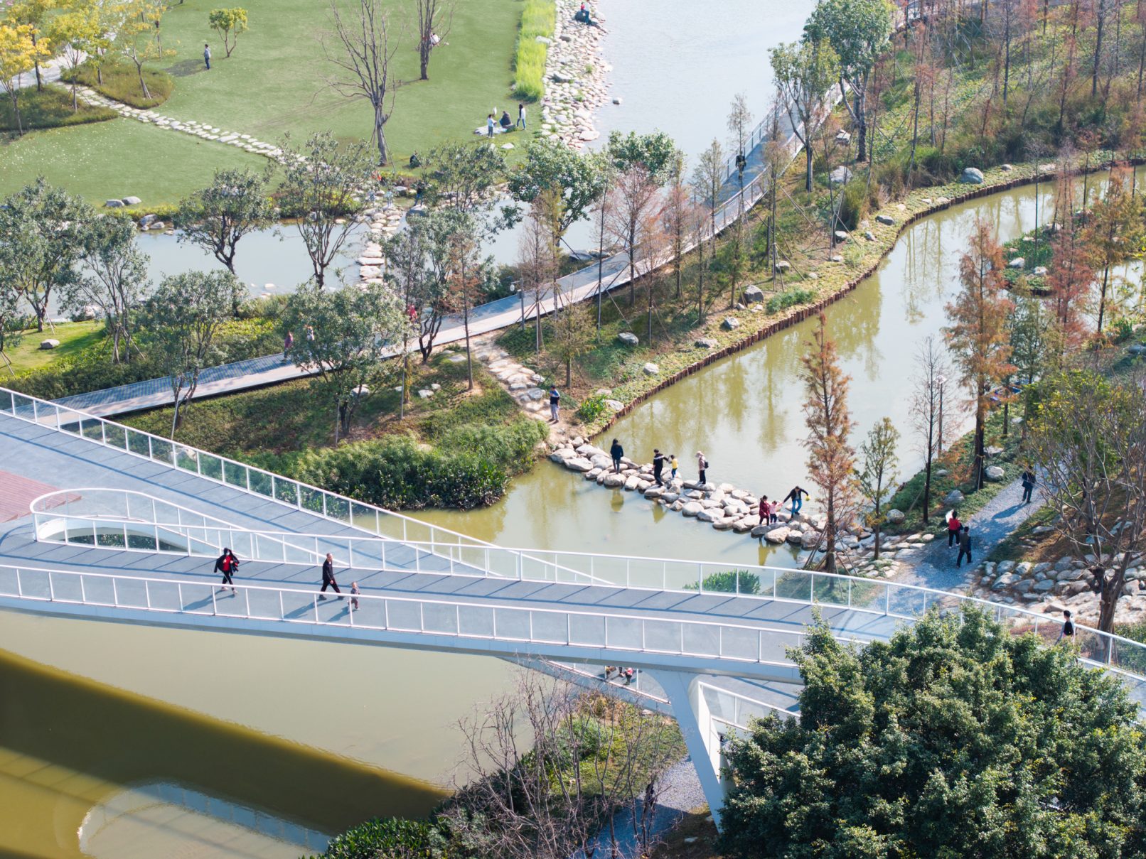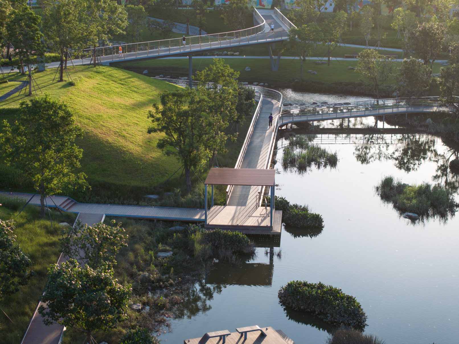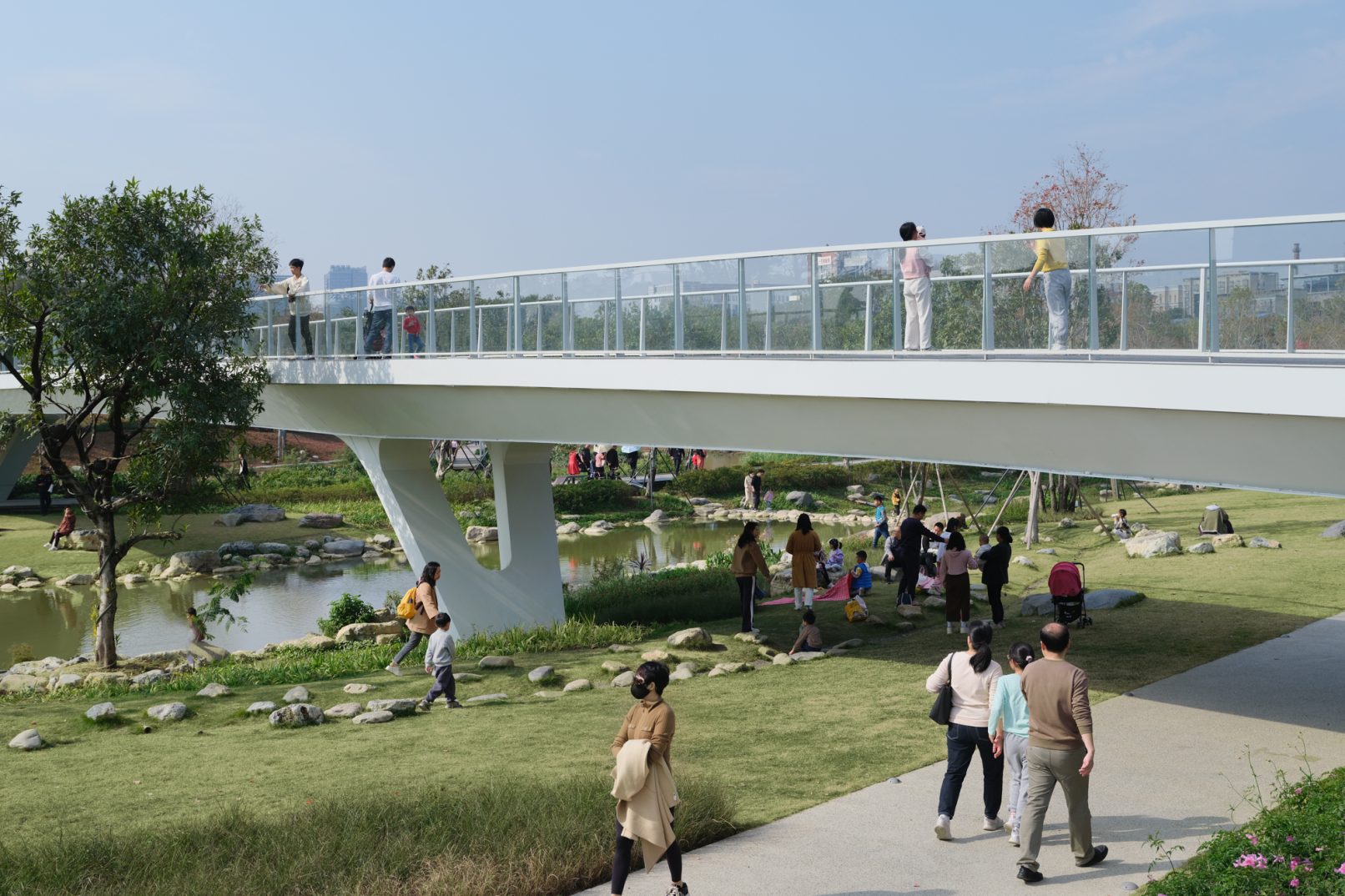 受建筑设计单位:汉森伯盛和景观设计单位:Henning Larsen的共同委托为东莞中心公园记录下的不同季节的图片,公园位于东莞国际商务区核心位置,其原址是一座自然古村,目前已开放南区,于2023年4月正式投入使用。