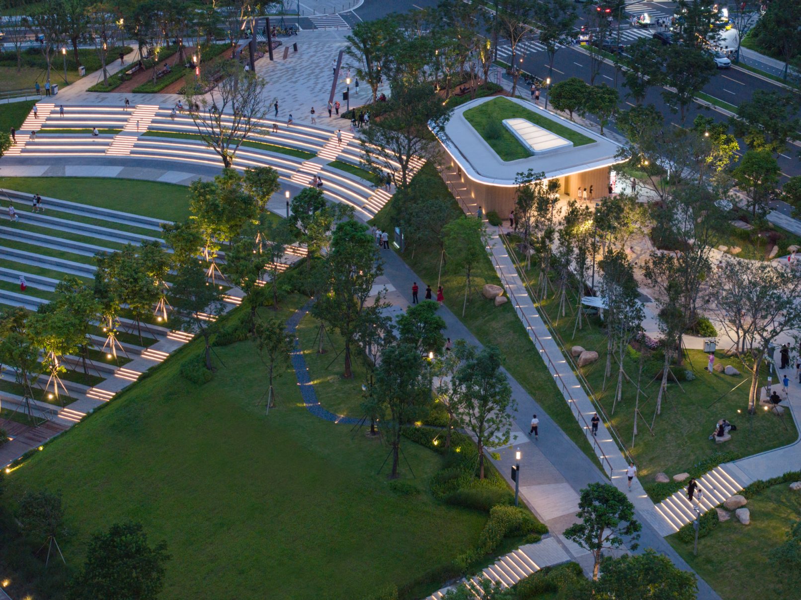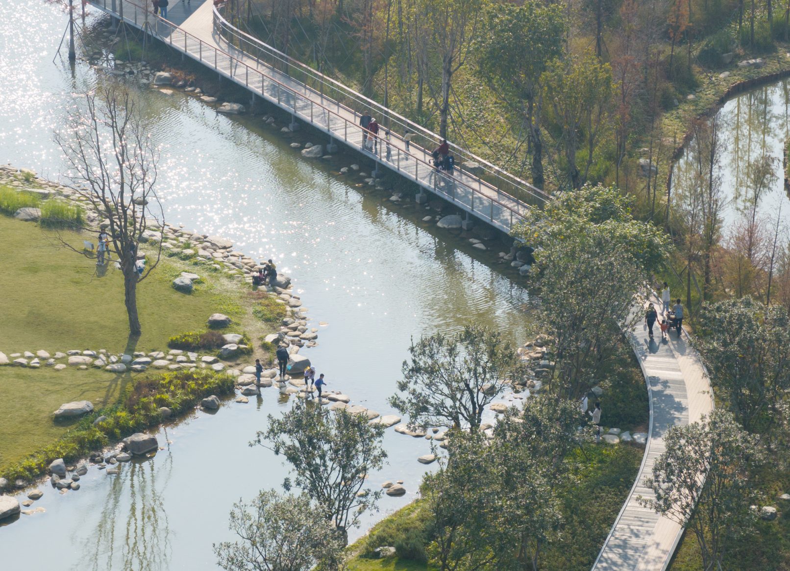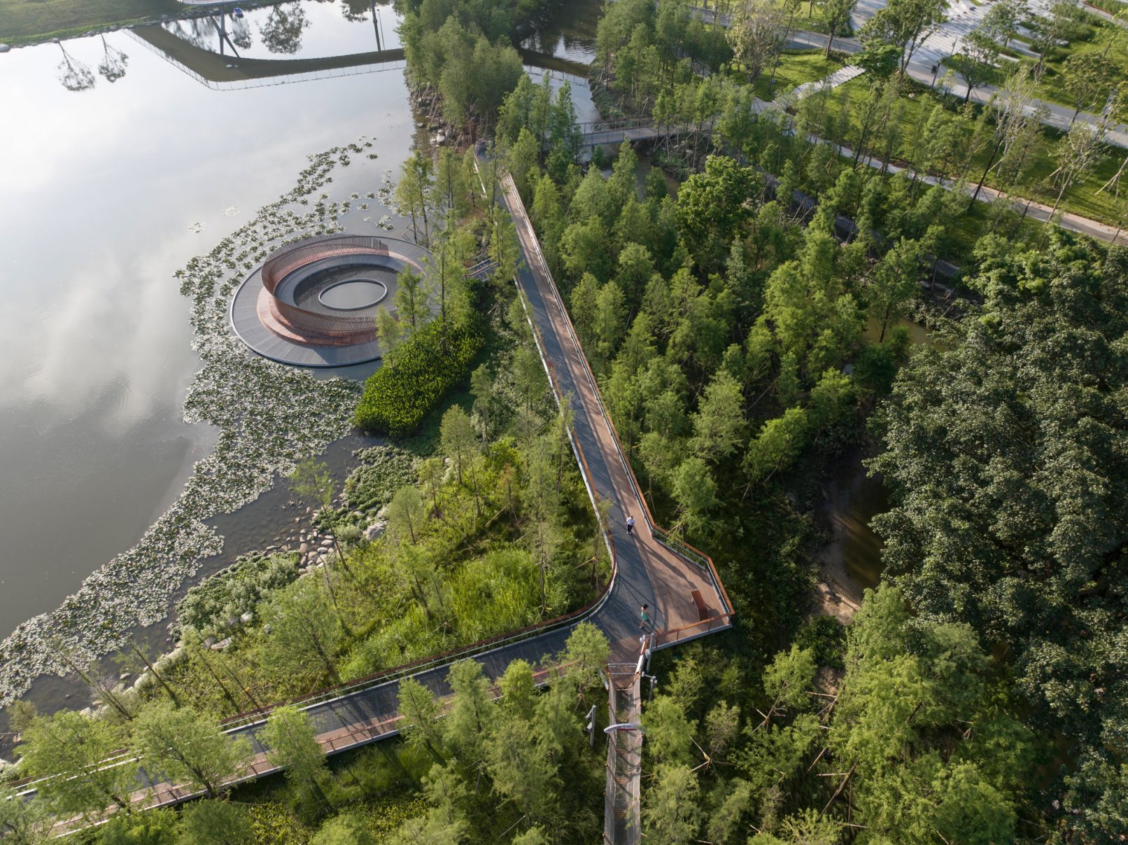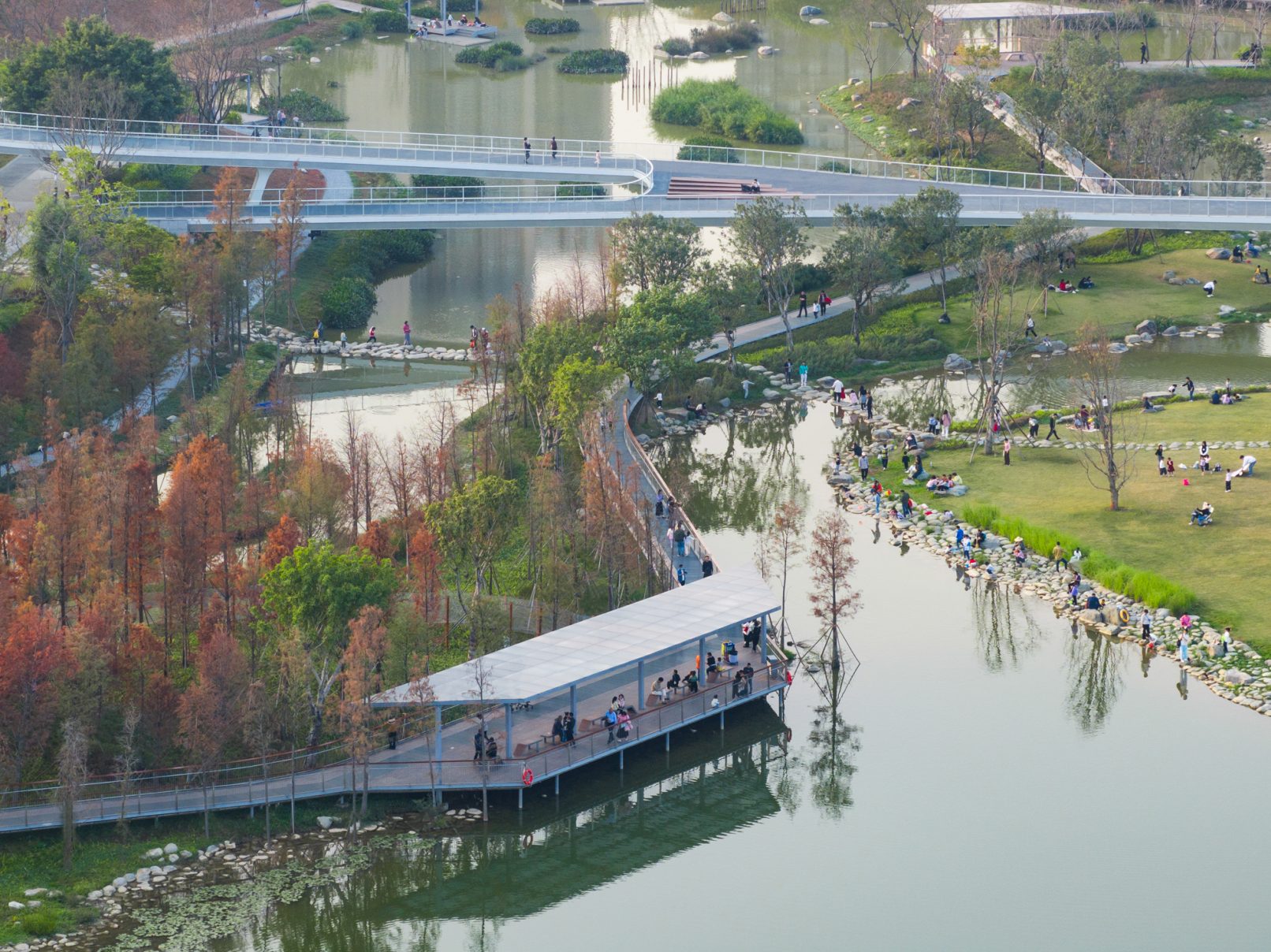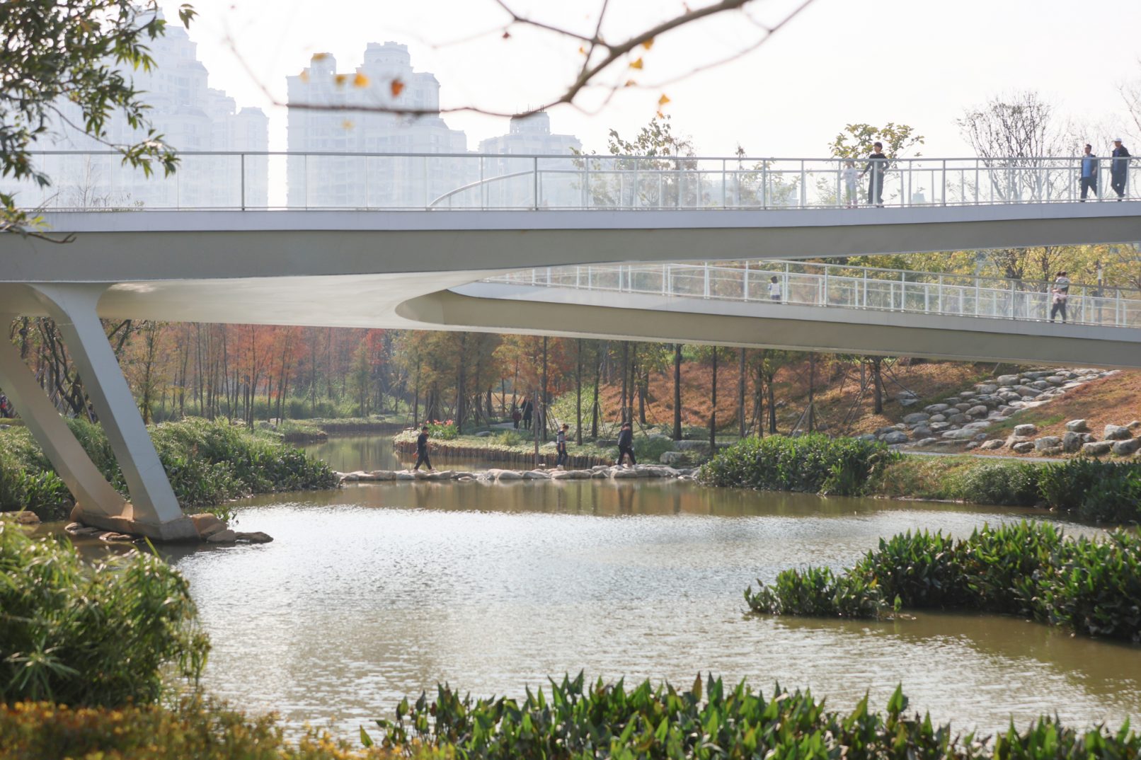 受建筑设计单位:汉森伯盛和景观设计单位:Henning Larsen的共同委托为东莞中心公园记录下的不同季节的图片,公园位于东莞国际商务区核心位置,其原址是一座自然古村,目前已开放南区,于2023年4月正式投入使用。