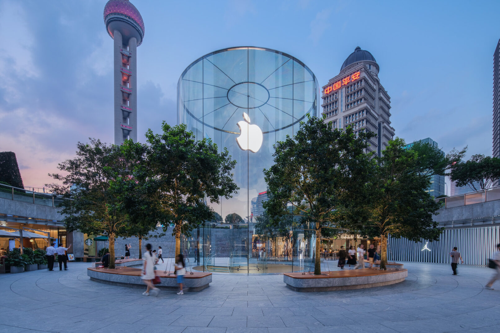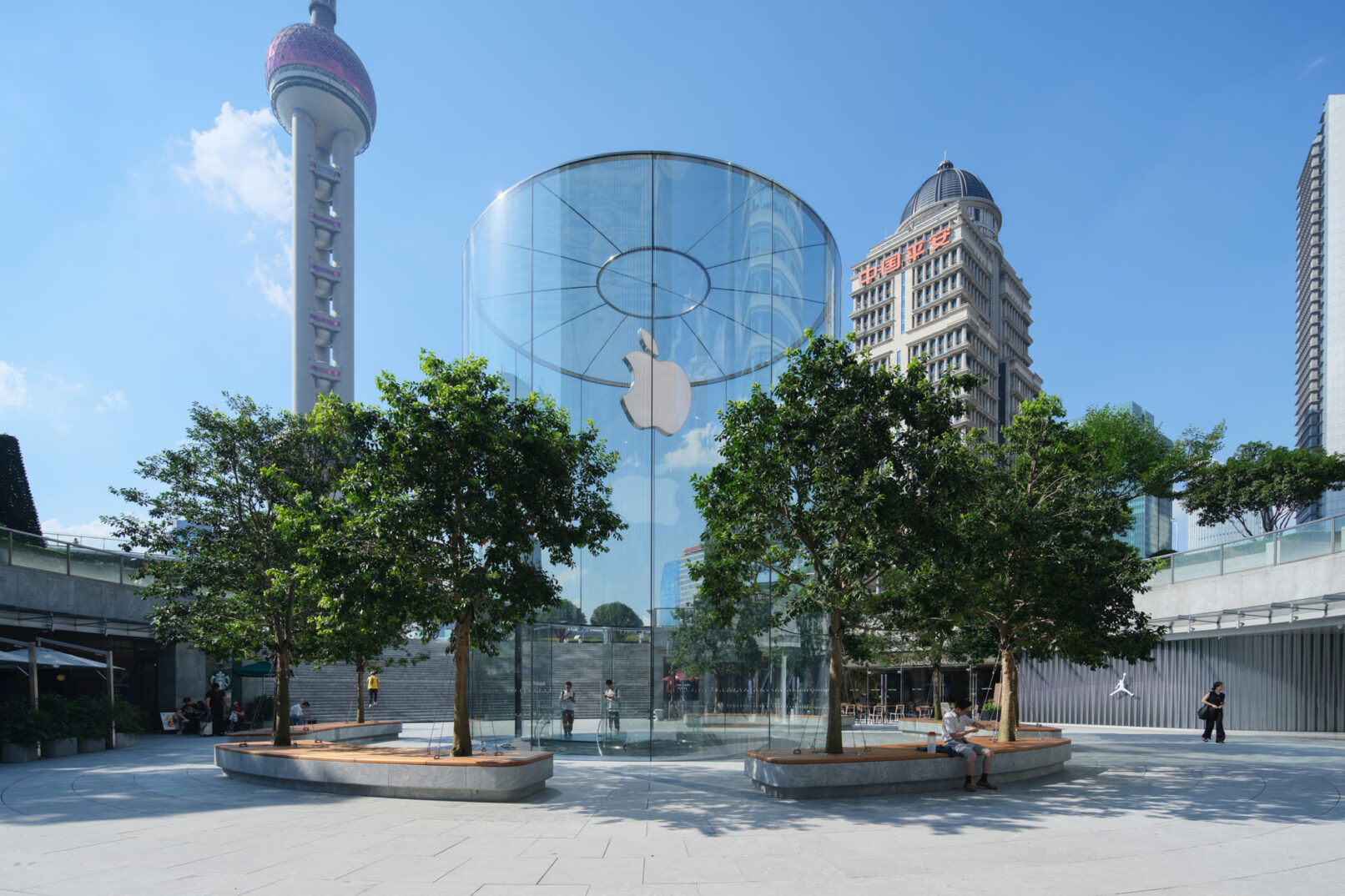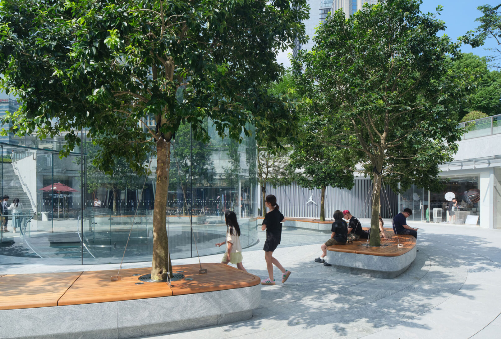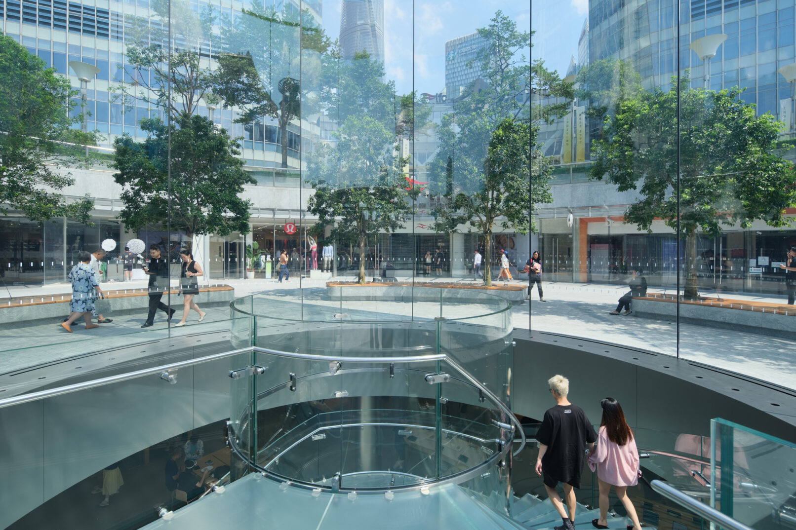 位于上海浦东的苹果Apple store,外场景观提升和幕墙更新升级,景观设计来自WAA+