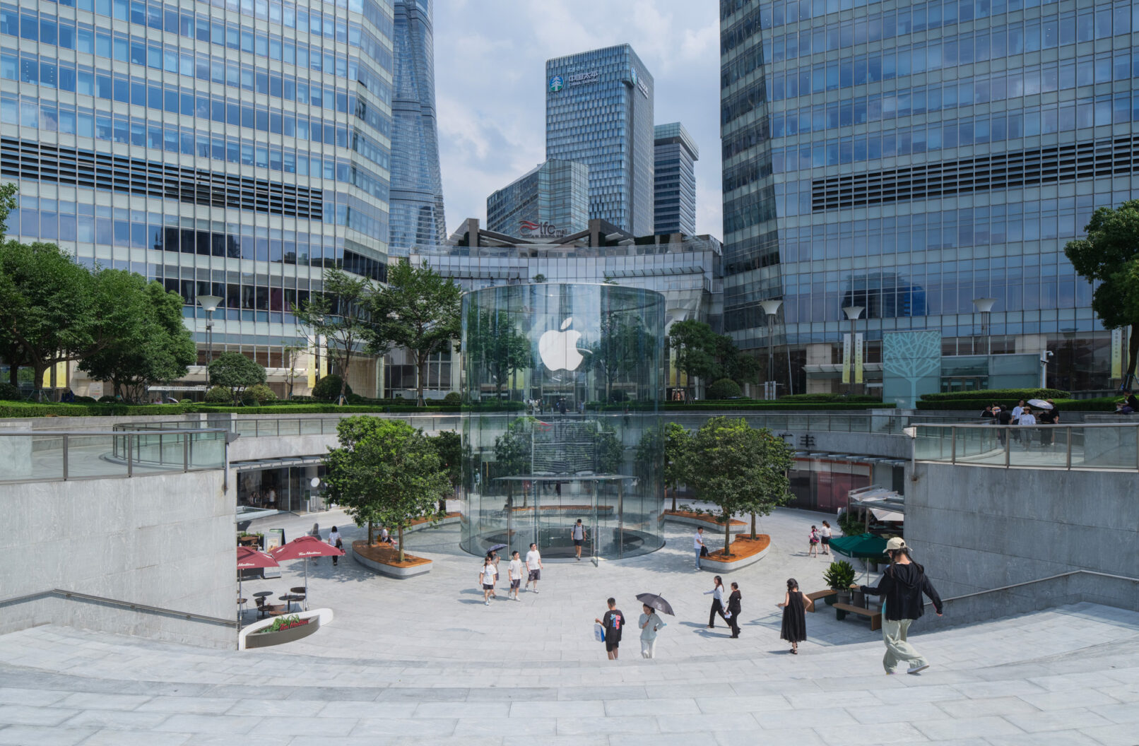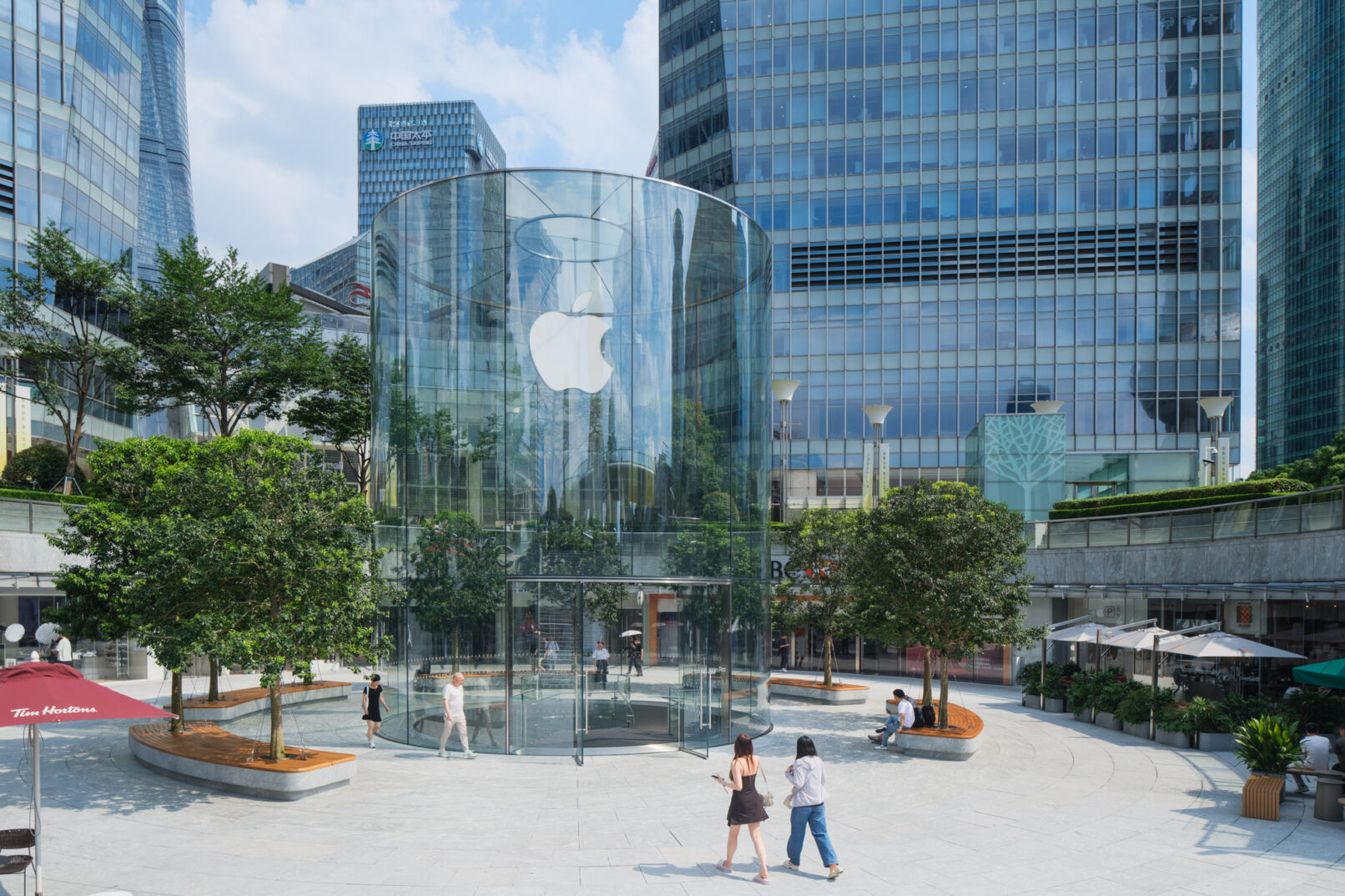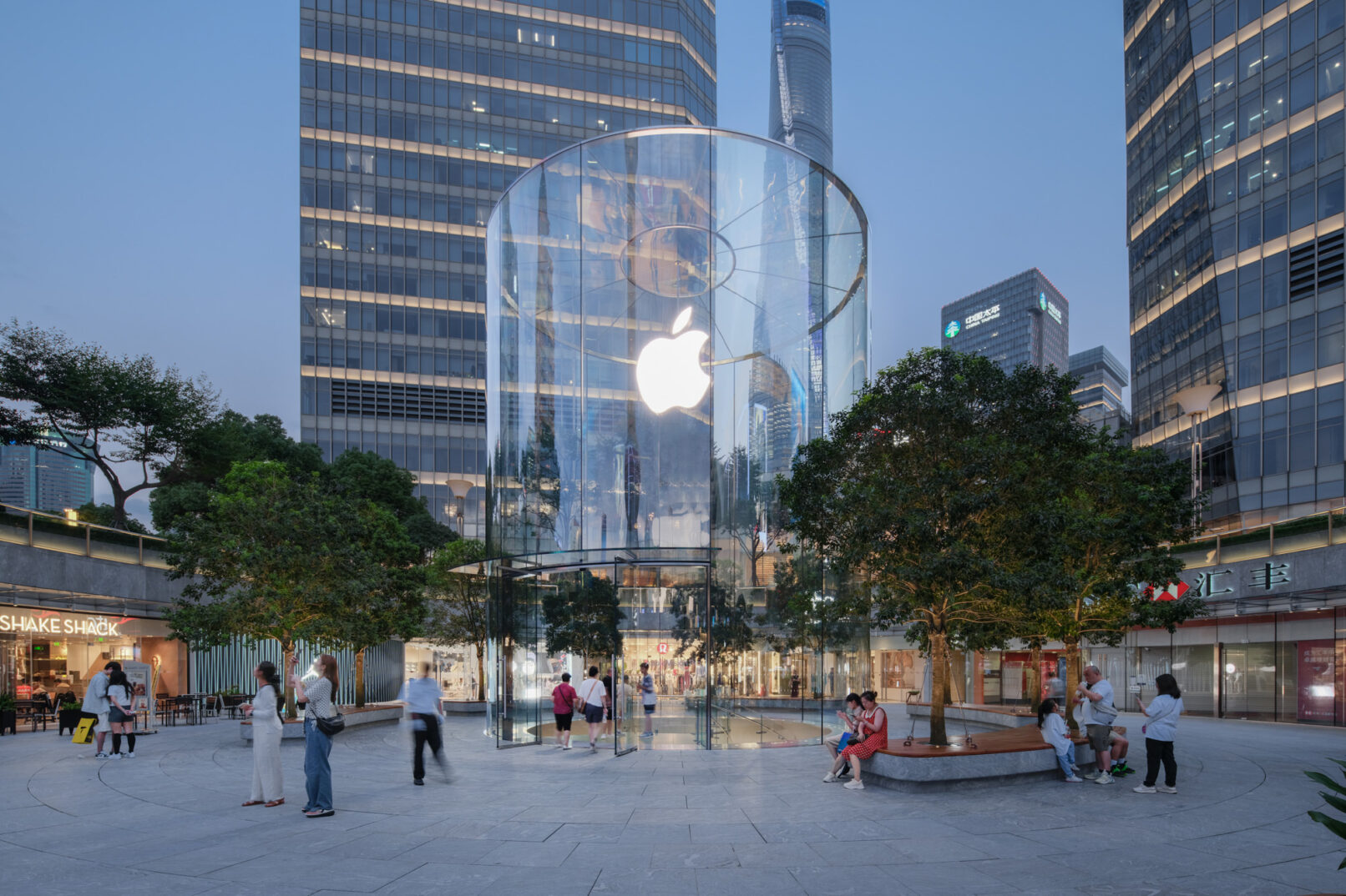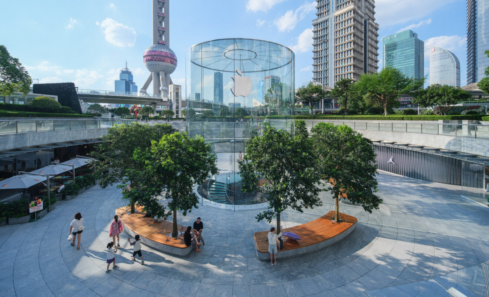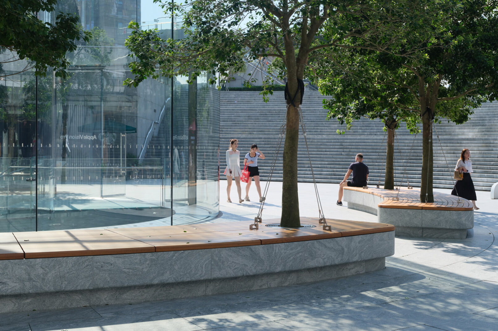 位于上海浦东的苹果Apple store,外场景观提升和幕墙更新升级,景观设计来自WAA+