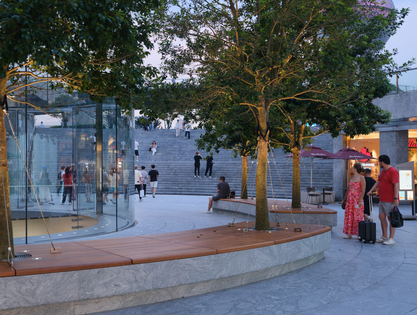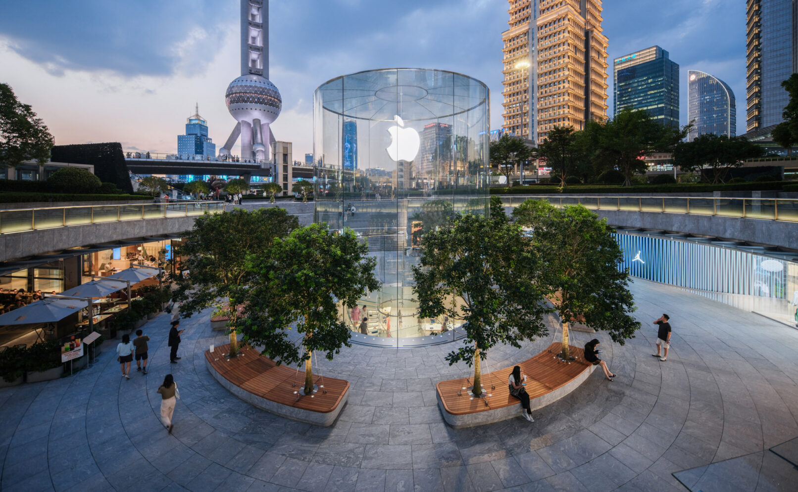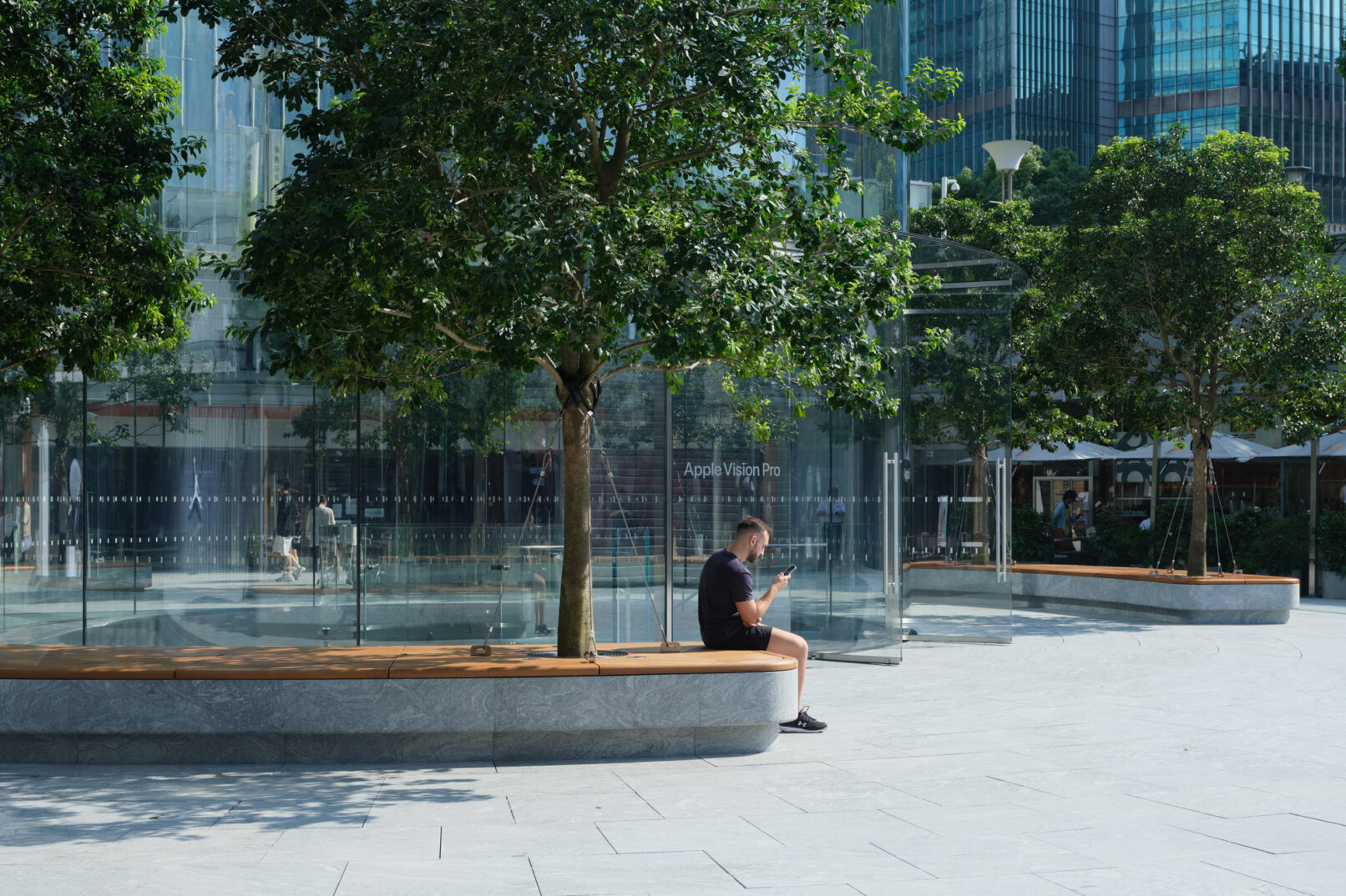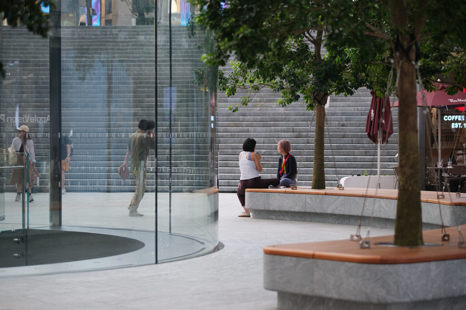 位于上海浦东的苹果Apple store,外场景观提升和幕墙更新升级,景观设计来自WAA+